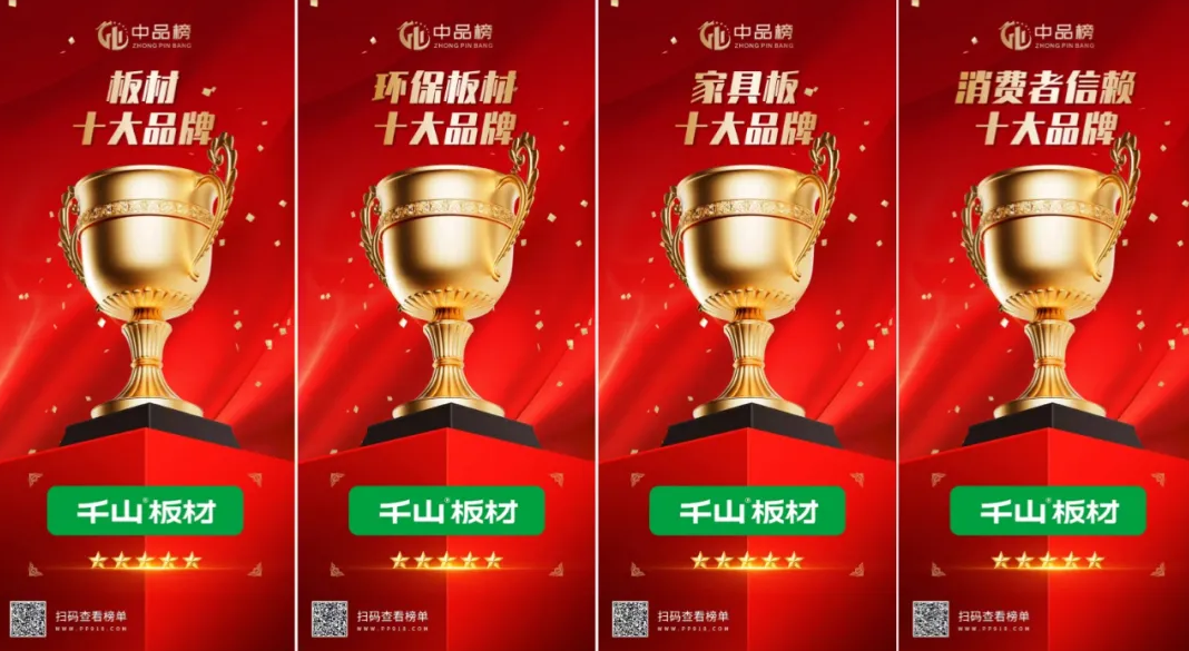 2025年4月,歷時三個多月的第十屆“中品榜”優品甄選活動圓滿落幕,板材大品牌榜單正式揭曉!千山板材憑借卓越產品力和強大市場表現力,再次成為行業焦點,斬獲四項重量級大獎:“板材十大品牌”、“環保板材十大品牌”、“家具板十大品牌”、“消費者信賴十大品牌”。自創立起,千山專注于家居板材領域,匠心精研,成績斐然,是時